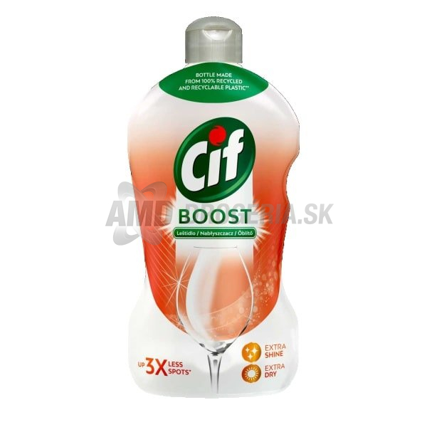 Leštidlo do umývačky riadu od značky Cif Boost je skvelou voľbou pre žiarivo lesklý a suchý riad bez šmúh! Vysoko účinná formula zaistí až 3 x lepšie výsledky - riad bez šmúh, extra lesk a extra suchý riad. Pre najlepšie výsledky s použitím Cif tabliet do umývačky riadu a Cif leštidlom Shine & Dry Boost.
