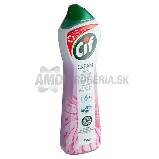 CIF Cream Lila flower, krémový abrazívny prípravok 500ml Cif Cream Lila Flower abrazívny prípravok vyčistí čo sa zdá byť nemožné. Na čistom povrchu zanecháva príjemnú vôňu ružových ľalií. Použitie: Pomocou navlhčenej handričky naneste na čistený povrch a jemne opláchnite vodou. Nepoužívajte na prírodné linoleum, kožu alebo textil a vyvarujte sa dlhšiemu kontaktu prípravku s lakovaným drevom a hliníkom. Vyhýbajte sa silnému drhnutiu.