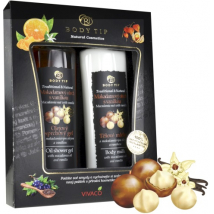 KAZETA SELECTION MAKADAMOVÝ ORECH S VANILKOU ZVLÁČŇUJÚCI KRÉM 200ML + OLEJOVÝ SPRCHOVÝ GÉL 200ML + TELOVÉ MLIEKO 200ML + MASÁŽNA HUBKA
