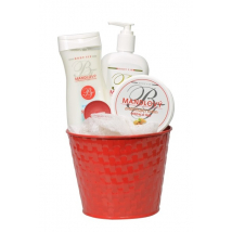 KAZETA MANDLA SPRCHOVÝ GÉL 300ML + TELOVÉ MLIEKO 400ML + KRÉM NA RUKY 300ML + PLEŤOVÝ KRÉM 250ML + VÝŽIVNÝ KRÉM 250ML + NOČNÝ KRÉM 250ML + KÚPEĽOVÁ RUKAVICA + MASÁŽNA HUBKA + PEMZA + VONNÁ SVIEČKA