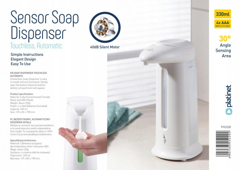 DÁVKOVAČ MYDLA BEZDOTYKOVÝ 330 ML