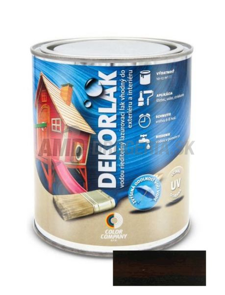 Univerzálny vodouriediteľný lak na drevo, ktorý možno použiť v interiéri a exteriéri. Odporúčaný na drevený nábytok a hračky pre deti.Môžete ho použiť na drevené plochy ako okenice, ploty, chaty, obklady, pergoly atď. Prešiel certifikátom STN EN - 71/3.Dekorlak sa nanáša štetcom, valčekom alebo striekaním na suchý, čistý povrch.Prvý náter sa aplikuje zriedený s vodou v pomere 2:1 až 1:1, podľa savosti dreva. Po zaschnutí sa drevo prebrúsi a odstráni sa brúsny prach. Druhý a tretí náter sa aplikujú neriedené v 4-hodinových intervaloch.Na zabezpečenie komplexnej ochrany dreva doporučujemedrevo ošetriť pred prvým náterom ochranným prostriedkom Krovsan profi proti biologickým škodcom.Spotreba:10-12 m2 / 1 liter