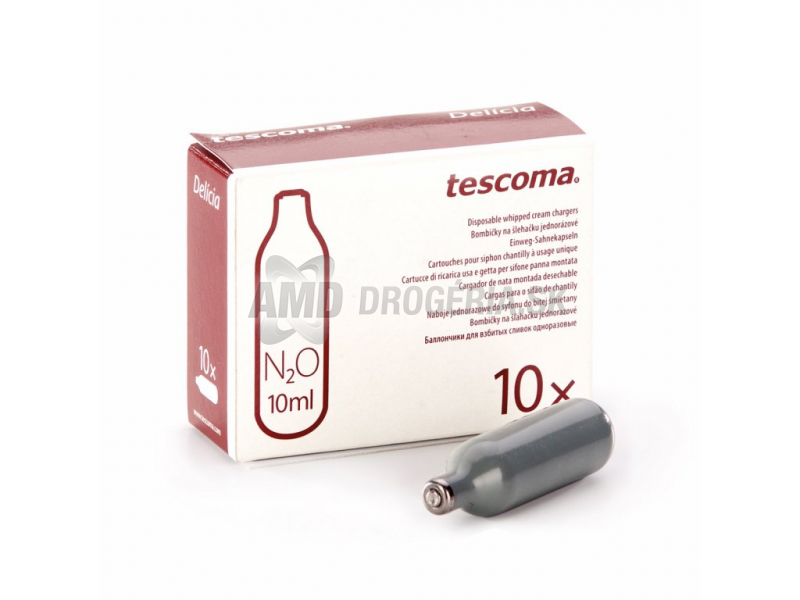 Tescoma jednorazové bombičky na šľahačku DELÍCIA sú navrhnuté na prípravu šľahačky vo fľašiach DELÍCIA alebo iných fľašiach so štandardným ventilom.