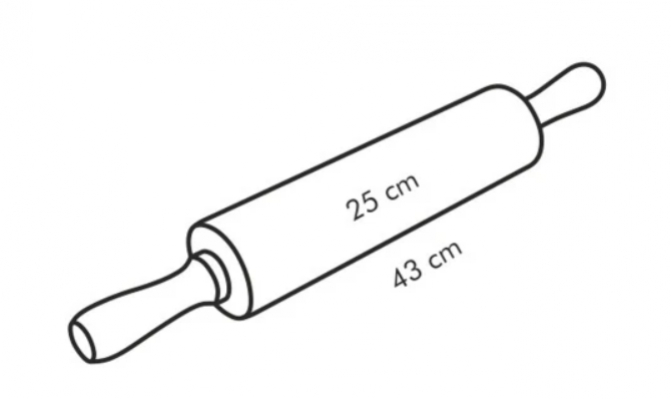 Priemer valčeka je 6 cm, a jeho dĺžka je 25 cm. Tieto rozmery sú ideálne na rozvaľkanie cesta pri príprave pečiva, cestovín alebo koláčov.