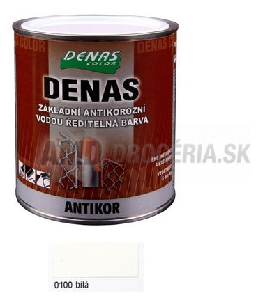 Použitie: Základné nátery oceľových, hliníkových a pozinkovaných konštrukcií. Farba DENAS ANTIKOR je vhodná pre nátery kovových striech, klampiarskych konštrukcií, oceľových plotov, oceľových mostov, stĺpov, zábradlí a iných konštrukcií vo výstavbe aj pri renovácii. Farbu DENAS ANTIKOR je možné použiť pre nátery v exteriéroch a interiéroch aj na čiastočne skorodované podklad. Ako vrchný krycí náter odporúčame použiť univerzálny vodou riediteľný email DENAS UNIVERZÁL.