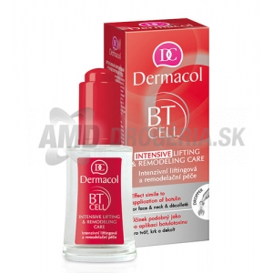 Intenzívne liftingová a remodelačný starostlivosť Dermacol BT Cell Intensive Lifting & Remodeling Care. Jedinečná ľahká textúra s koncentrovaným protivráskovým komplexom má výsledný účinok podobný ako po aplikácii injekcií Botulotoxínu. Vypína pleť, vyhladzuje výrazové línie, vypĺňa vrásky a zabraňuje ich vzniku. Zvyšuje pevnosť a pružnosť pleti, obnovuje jej štruktúru a kontúry tváre.