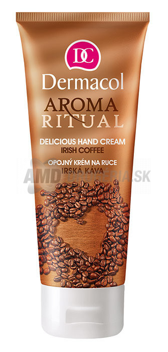 Krém na ruky ** Dermacol Aroma Ritual Irish Coffee **. Krém Dermacol Aroma Ritual Irish Coffee s vôňou írskej kávy pokožku dokonale hydratuje. Chráni pokožku pred vysušením a poškodením. Obsiahnutý kofeín podporuje mikrocikulaci v pokožke a bunkám dodáva novú energiu.