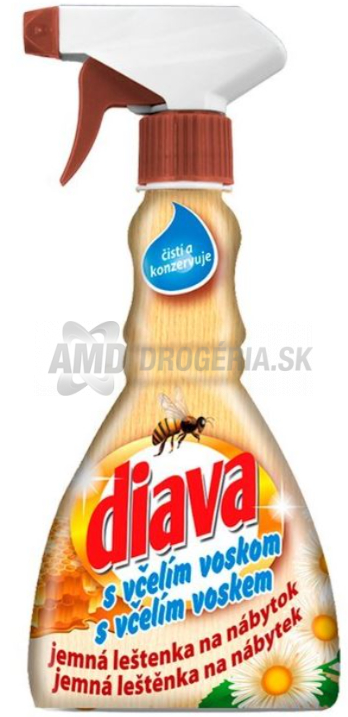DIAVA ČISTIACA A LEŠTIACA EMULZIA 330 ML najlepší prostriedok, ktorý vytvorí film a tak zabraňuje usadzaniu prachučistiaci a leštiaci prípravok na všetky druhy nábytkuvytvára ochranný filmochranný a čistiaci prípravok na parkety, laminátovú a PVC podlahu a podlahu z dreva a mramoručistá podlaha získa dostatočný ochranný film.