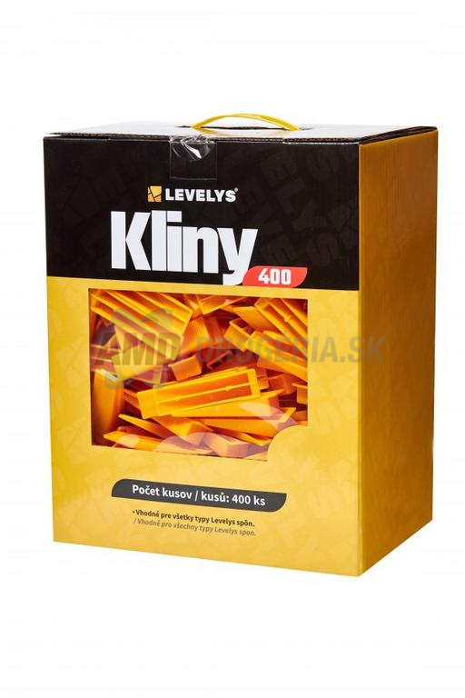 Plastové kliny značky LEVELYS sú v bledo oranžovej farbe a zabezpečujú silný a rovnomerný tlak na dlaždice počas celého procesu tuhnutia lepidla. Ich účelom je eliminovať akýkoľvek pohyb medzi jednotlivými dlaždicami. Tieto kliny sú vyrobené z prvotriednych materiálov, ktoré poskytujú optimálnu rovnováhu medzi pružnosťou a odolnosťou. Dôležitou vlastnosťou klinov je možnosť ich opakovaneho použitia.