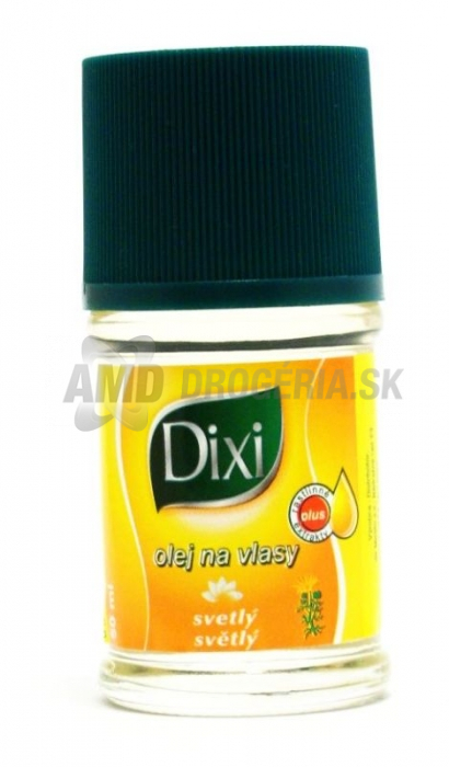 DIXI OLEJ NA VLASY SVETLÝ 50 MLOlej na svetlé vlasy - jemný nedráždivý.Používa sa na úpravu účesu. Vlasy získajú lesk, nelietajú a majú prirodzený vzhľad.Možno použiť aj na spevnenie vlasových končekov.