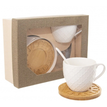ORION SADA PORCELÁNOVÝ HRNČEK S LYŽIČKOU A TANIERIKOM WHITELINE 0,25L 2KS