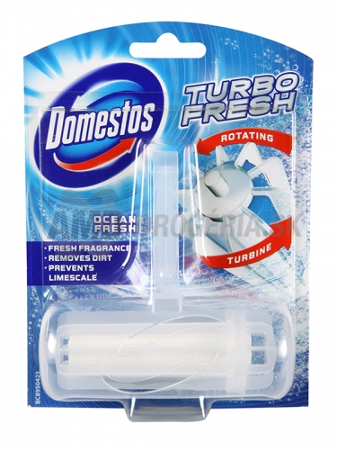 Rotačné tuhý Wc blok. Jedinečný rotačný tuhý Wc blok s dvojfázovú náplňou, ktorá čistí a osviežuje pri každom spláchnutí. Turbína sa otáča pod tlakom vody a šíria tak Domestos silu všade okolo seba. Zabraňuje tvorbe vodného kameňa a odstraňuje nečistoty všade tam, kde sa množia baktérie.
