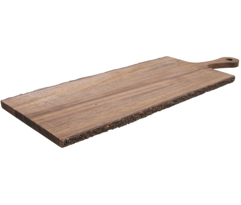 Štýlová krájacia a servírovacia doštička z kvalitného akáciového dreva vyniká vysokou odolnosťou a dlhou životnosťou. Každý kus je originál so svojím jedinečným zafarbením a kresbou dreva.