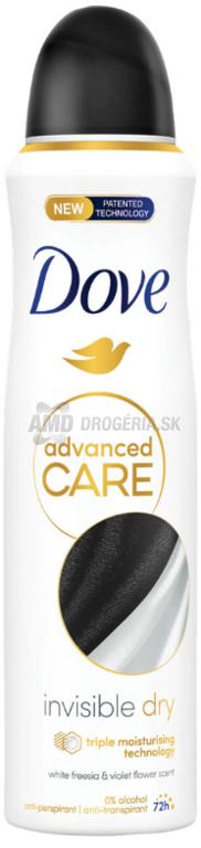 Dove Advanced Care Invisible Dry antiperspirant sprej je skvelou voľbou pre každodenné použitie, poskytuje vám istotu a sebavedomie počas celého dňa.