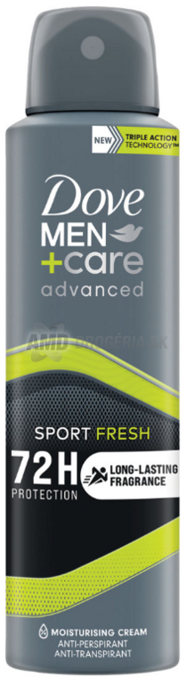 Dove Men+Care Advanced Sport Fresh je antiperspirant v spreji, ktorý poskytuje výnimočnú 72-hodinovú ochranu proti poteniu a zápachu, špeciálne navrhnutý pre aktívnych mužov. Tento antiperspirant je ideálny pre tých, ktorí radi športujú alebo cvičia, a chcú sa cítiť sviežo pred aj po fyzickej aktivite. Vďaka unikátnej technológii Triple Action ponúka nielen ochranu pred potením, ale aj starostlivosť o pokožku podpazušia.