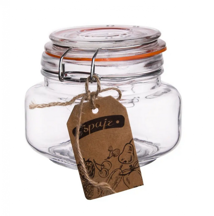 Pevné uzavretie zaisťuje silikónové tesnenie a patentný drôtený uzáver. Naplnená vrstvami orieškov a semienok sa stane originálnym hand-made darčekom, s kamienkami a mušľami krásnou dekoráciou.