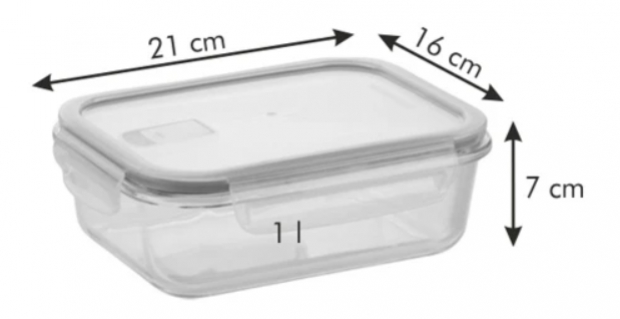 Dóza Freshbox Glass s objemom 1,0 litra je obdĺžniková a vynikajúcou voľbou pre skladovanie, zapekanie a ohrev pokrmov. Je vybavená vzduchotesným viečkom so silikónovým tesnením, čo zaručuje, že potraviny zostanú čerstvé a čerstvé. Navyše pri prenášaní nevytečú, čo je praktickým a bezpečným riešením.