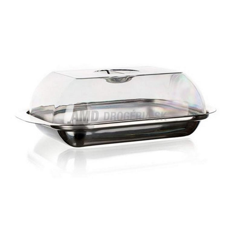 Dóza na maslo Culinaria. Rozmery: dĺžka: 17,8cm, šírka 11cm, výška 5,5cm. Materiál: nerez 430 (18/0) (sila nerezi 0,50mm ) viečko plast AS.