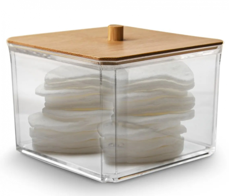 Dóza na vatové tampóny predstavuje elegantný doplnok pre váš kúpeľňový interiér. Je vyrobená z kombinácie plastu a bambusového dreva, čo zabezpečuje nielen jej estetický vzhľad, ale aj trvanlivosť. Transparentný dizajn umožňuje jednoduché zobrazenie obsahu a zároveň prispieva k elegancii celej dózy. S rozmermi 9,5x9,5x8 cm má dostatočný priestor na uloženie vatových tampónov, čo z nej robí praktický a štýlový doplnok pre vašu kúpeľňu.