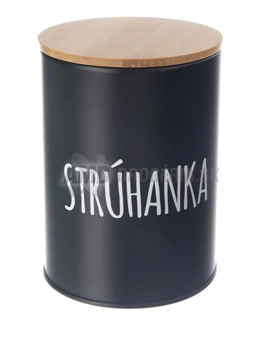 Vkusný kuchynský doplnok: plechová dóza s matným čiernym povrchom a bielym nápisom STRÚHANKA z kolekcie BLACK. Zorganizuje špajzu – perfektná na strúhanku z rožkov, panko či cornflakes pre vyprážané dobroty a trojobal.