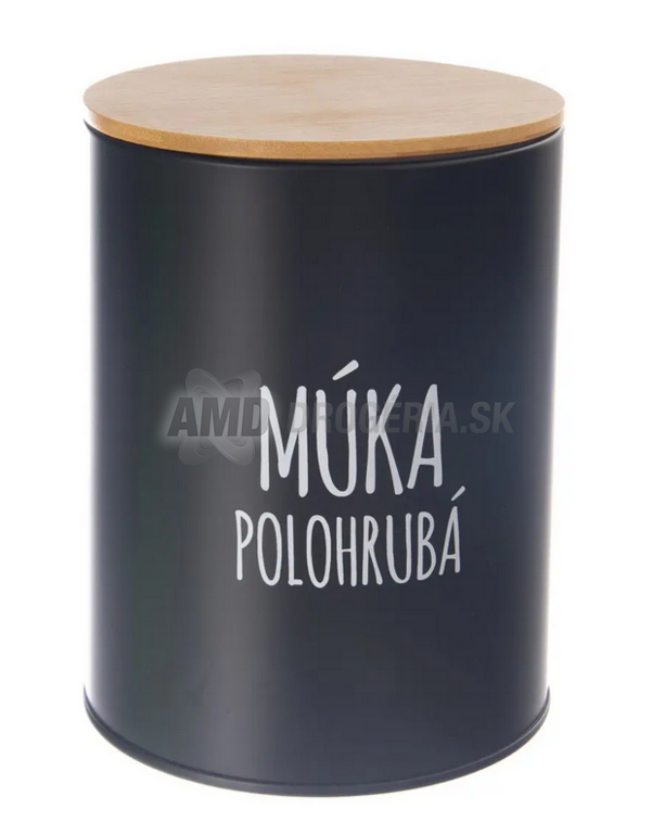 Dizajnová plechová dóza na múku s matným čiernym povrchom perfektne uskladní polohrubú pšeničnú múku. S objemom 2,3 l sa do nej zmestí celé balenie, ideálne na prípravu báboviek či iných dobrôt.Bambusové viečko so silikónovým tesnením ju hermeticky uzavrie, zabráni zvlhnutiu a ochráni pred hmyzom.