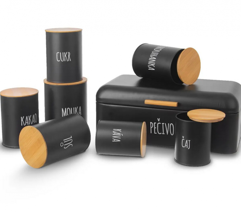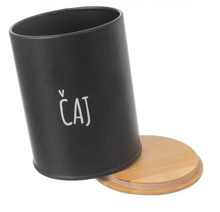 Ak hľadáte vkusné kuchynské doplnky, plechové dózy s matným čiernym povrchom z kolekcie BLACK sú ideálnou voľbou na organizáciu špajzu.Biely nápis ČAJ jasne označí obsah – či už sypaný čaj, bylinkové zmesi alebo čajové vrecúška, všetko sa zmestí do objemu 0,8 l. Bambusové viečko so silikónovým tesnením zabráni vysypaniu a udrží sviežosť.