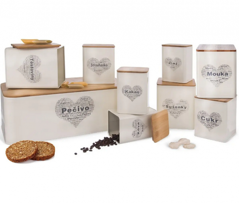 Organizácia kuchyne sa stane hračkou s kolekciou SRDCE – retro radosť pre milovníkov štýlu.Plechová dóza v smotanovej farbe s nápisom CUKR je ideálna na práškový, trstinový či kockový cukor, ale aj na sladké cukrovinky, ktoré vám osladia každú chvíľu. Drewné viečko so silikónovým tesnením spoľahlivo uzavrie obsah a udrží ho svieže.