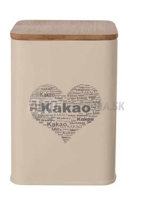 Plechová dóza v smotanovej farbe s nápisom KAKAO dá pevné miesto sladkému granku, holandskému kakau či RAW verzii. Drewné viečko so silikónovým tesnením spoľahlivo uzavrie obsah a udrží ho svieže.