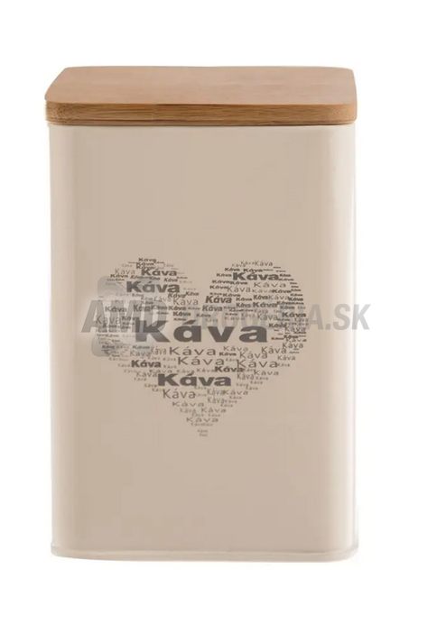 Plechová dóza v smotanovej farbe s nápisom KÁVA dá pevné miesto zrnkovej, mletej či rozpustnej káve. Drewné viečko so silikónovým tesnením spoľahlivo uzavrie obsah a udrží arómu sviežu.