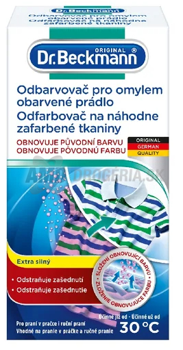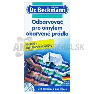 Dr.Beckmann odfarbovač na omylom zafarbené prádlo navracia pôvodnú farbu textíliám, ktoré sa nechtiac zafarbili pri spoločnom praní v práčke. Vrecko vystačí na odfarbenie 1,5 kg bielizne váženého za sucha. Pre pranie v práčke sú potrebné 2 sáčky. Vzhľadom k veľkej rozdielnosti tkanín nemožno vždy zaručiť výsledok. Možno ho použiť na na všetky druhy textílií (nie na syntetické tkaniny a džínovinu). Po použití nie je potrebné odevy znovu prať. Pred použitím je potrebné vykonať skúšku stálofarebnosti a kontrolu etikety na odeve. Prípravok tiež nie je vhodný na škvrny od opaľovacích a samoopaľovacích prostriedkov.