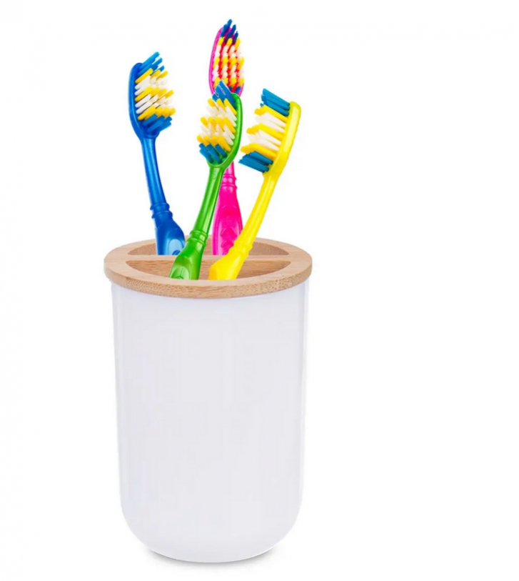 Ukončite povaľovanie zubných kefiek a pasty po umývadle s týmto jednoduchým bielym kelímkom s bambusovým viečkom, ktoré udrží všetky obľúbené hygienické potreby pekne pohromade. Na jednej strane umiestnite zubnú pastu, v druhej časti kefky všetkých členov rodiny.