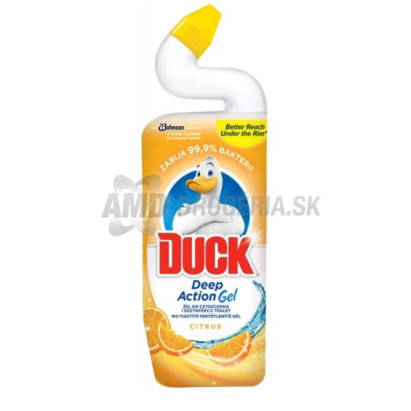 Duck tekutý WC gel – jedinečne zakrivené hrdlo fľaše dosiahne pod obrubu WC misy, kde sa najviac vyskytujú usadeniny. Čistič dobre priľne, odstráni nečistoty a 2 × viac vodného kameňa.