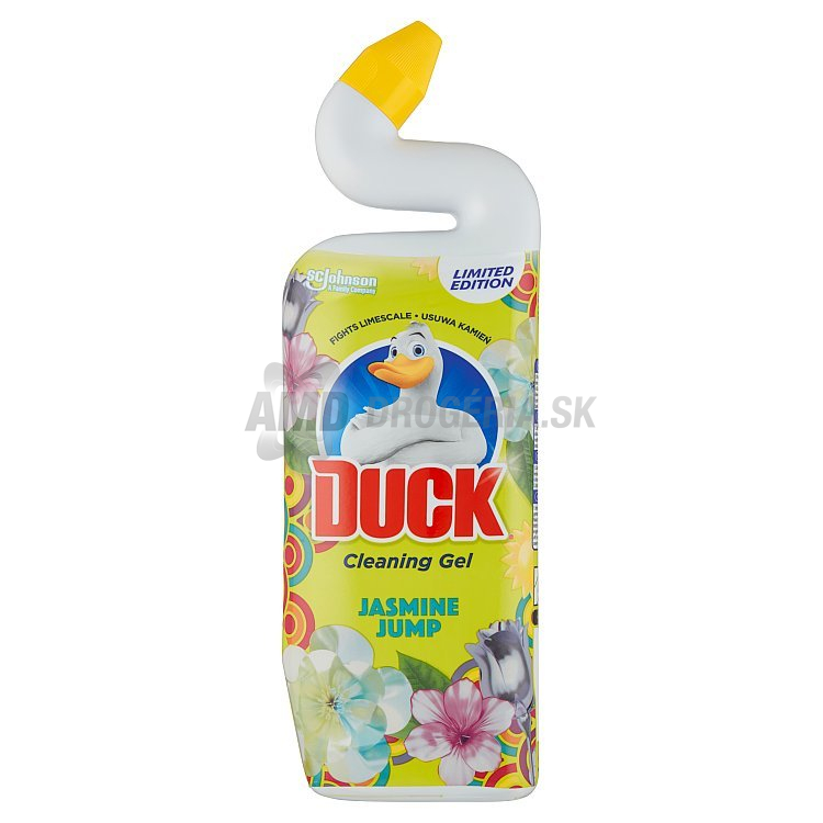 S pomocou tekutého čistiaceho WC gélu DUCK Jasmine Jump vyčistíte perfektne vašu toaletu. Na rozdiel od ostatných čističov sa dostane dokonale aj na miesta pod obrubou WC misy (overené laboratórne). Po aplikácii tekutého čistiaceho gélu Duck bude vaša toaleta čistá, zbavená vodného kameňa aj škvŕn. Svieža jazmínová vôňa gélu DUCK Jasmine Jump prevonia príjemne celú miestnosť.