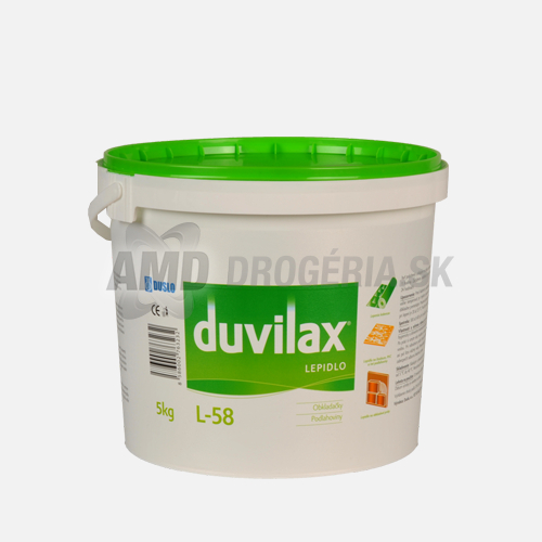 Duvilax® L-58 je univerzálne stavebné lepidlo. Používa sa na lepenie textilných a PVC- podlahovín, linolea, marmolea, vinylazbestové a mramorové dlažby, keramických a polystyrénových obkladov a podhľadov apod. Uvedené materiály sa môžu lepiť na podklady z cementového poteru, na omietky, drevovláknité a drevotrieskové dosky, na anhydritové a sadrové vyrovnávacie vrstvy apod. Keramické materiály sa môžu lepiť aj na podklady neprimajúce vlhkosť z lepidla. Používa sa neriedený. Za účelom zníženia tekutosti, resp. zvýšenia hrúbky lepidla, sa môže bezprostredne pred lepením primiešať cement alebo jemný kremičitý piesok. Na nanášanie sa používa zubová stierka.