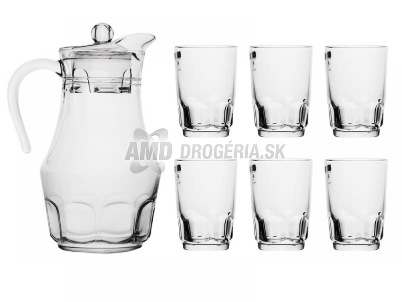 Sada sa skladá zo 7 prvkov, vyrobených zo sodného skla. Je určená na studené nápoje. Plastový kryt zabráni vstupu hmyzu alebo nečistôt.