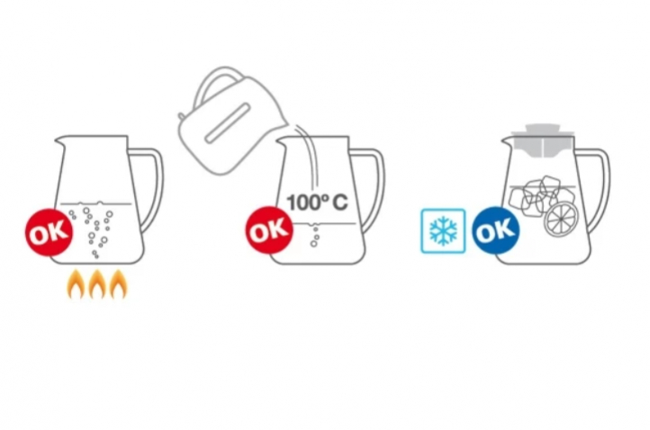 - Materiály: Džbán je vyrobený zo žiaruvzdorného borosilikátového skla, ktoré je odolné voči teplu a nemení chuť ani vôňu nápojov. Viečko džbána je vyrobené z kvalitného plastu.