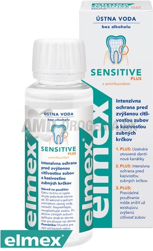 'Účinný systém pri ochrane precitlivených zubov 1. PLUS: Vysoko účinný aminfluorid vytvára vrstvu, ktorá chráni obnažené zubné krčky proti zubnému kazu 2. PLUS: Keď sa tieto výrobky používajú pravidelne, jedinečné aktívne zložky chránia proti precitlivenosti zubov 3. PLUS: Vďaka obzvlášť nízkej abrazivitě (RDA 30) čistí zubná pasta veľmi šetrne a nepoškodzuje obnažené zubné krčky Produkty elmex ® SENSITIVE PLUS boli v súčinnosti so stomatologickými klinikami vyvinuté cielene k starostlivosti o obnažené zubné krčky. elmex ® SENSITIVE PLUS zubná pasta a ústna voda obsahujú vysoko účinný aminfluorid. Táto elmex ® účinná látka podporuje remineralizáciu zuboviny a chráni pred kazivosťou zubov. Zubná pasta okrem toho vykazuje nízku abrazivitu (RDA 30), čím sa pri čistení zubov zabráni nadmernému obrusovaniu mäkké zuboviny. Elmex ® SENSITIVE PLUS ústna voda je ideálnym doplnkom dennej starostlivosti o chrup. Obsahuje zlúčeninu vysoko aktívne účinné látky aminfluoridu s ochranným polymérom, ktorá podporuje pôsobenie zubnej pasty elmex ® SENSITIVE PLUS. Klinické testy dokazujú, že osobitný ochranný systém elmex ® SENSITIVE PLUS pozostávajúce zo zubnej pasty a ústnej vody pri pravidelnej aplikácii významne znižuje precitlivenosť zubných krčkov a osvedčuje sa ako prevencia ich kazivosti.Obnažené zubné krčky vyžadujú osobitnú starostlivosť:Aké sú príčiny precitlivenosti zubov? Stáva sa, že Vás po príliš horúcich alebo naopak studených jedlách a nápojoch rozbolí zuby? Najčastejšou príčinou je v takom prípade ustupujúce ďasná s následným obnažením zubných krčkov, ktoré potom ďalej zostávajú bez ochrany. Na rozdiel od zubnej korunky nie je povrch zubných krčkov chránený tvrdou sklovinou, ale tvorí ho mäkšie zubovina - dentín. Nielen že sú přecitlivělejší, ale trpia ešte navyše nadmerným obrusovaním (abráziou) zuboviny a sú preto obzvlášť ohrozené zubným kazom. V tejto súvislosti sa vžil termín kaz zubných krčkov.V starostlivosti o obnažené zubné krčky si preto počínajte šetrne. Ak si čistíte zuby horizontálne a ak zvolíte si navyše kefku s tvrdým vlasom, ďasno aj krčky sú vystavené príliš veľkému náporu. Okrem toho sa tak môže navodiť nadmerné obrusovanie zuboviny s následným vznikom takzvaných "