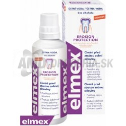 ELMEX EROSION PROTECTION ústna voda s novou kombináciou aktívnych látok - chloridom cínatým a aminfluoridom, vytvára na povrchu zubov vrstvu s vysokým obsahom cínatých iónov.