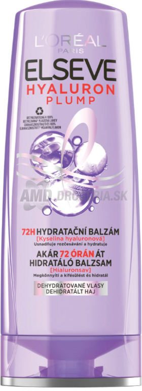 Vlasy bez života sú často znakom dehydratácie. Hydratačný balzam Hyaluron Plump okamžite rozčesáva a hydratuje vlasy až na 72 hodín**, zanechávajúc ich lesklejšie a 10x viac hydratované** bez zaťaženia. Kyselina hyalurónová, ktorá sa prirodzene nachádza v tele a dokáže viazať až 1000x viac vody, než sama váži, pomáha vlasom znovu získať hydratáciu.