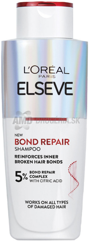 L'Oréal Paris Elseve Bond Repair je regeneračný šampón obohatený o kyselinu citrónovú, ktorý prináša historicky najintenzívnejšiu obnovu vlasov od L'Oréal Paris. Tento šampón preniká pod povrch vlasového vlákna až do jeho stredu, kde napomáha opravovať a posilňovať oslabené vlasové väzby.
