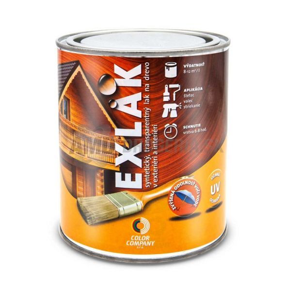 Priehľadný syntetický lak do exteriéru, ktorý znesie to najvyššie nasadenie a zachováva neporušený vzhľad a vysokú tvrdosť. Exlak je najmodernejší priehľadný polyuretánový lak na záhradný nábytok, dvere, obklady, chaty a pergoly. Je určený do ťažkých podmienok exteriéru, no možno ho používať i v interiéri. Dodáva sa matný alebo lesklý. Exlak je určený na vrchné transparentné lakovanie dreva a drevených výrobkov ako sú dvere, ploty, okenice, záhradný nábytok, pergoly, chaty, obloženia stien, stropov a ostatných. Exlak sa nanáša štetcom, valčekom alebo striekaním na suchý, čistý povrch v 2 až 3 vrstvách. Po prvom nátere sa lakovaný povrch prebrúsi brúsnym papierom. Druhý a tretí náter sa aplikuje po 6-8 hodinách podľa povahy povrchu a teploty prostredia.