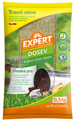 Trávna zmes EXPERT - dosev je zostavená z vybraných druhov tráv, ktoré rýchlo dopĺňajú skladbu trávnatej plochy. Hodí sa pre jarný dosev, ale aj v priebehu vegetácie.