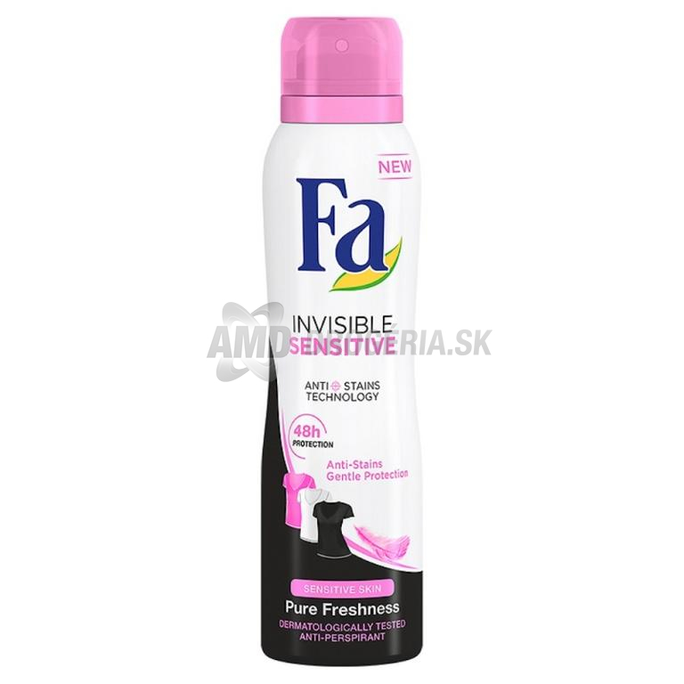 Fa Invisible Sensitive anti-perspirant s technológiou proti škvrnám pre jemnú ochranu pred telesným pachom až na 48h.