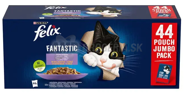 FELIX FANTASTIC HOVÄDZIE, KURACIE, LOSOS, TUNIAK V ŽELÉ 44X85G