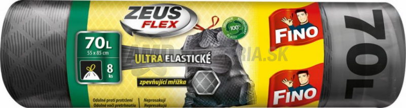 Fino vrecia Zeus Flex s objemom 70 litrov sú zaťahovacie, ultra elastické a odolné proti presakovaniu a pretrhnutiu. Tieto vrecia sú vyrobené z 100% recyklovaného plastu, čo prispieva k ochrane životného prostredia. Sú vybavené spevňujúcou sieťkou, ktorá zvyšuje ich pevnosť a odolnosť.