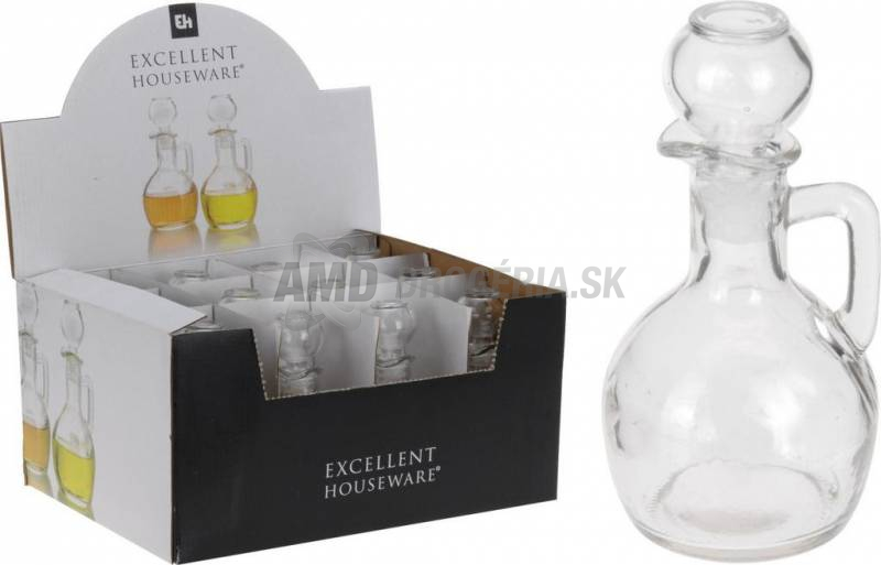 sklenená, číra, tvarovaná fľaška na olej a ocot so skleneným vrchnákom, výška 15 cm