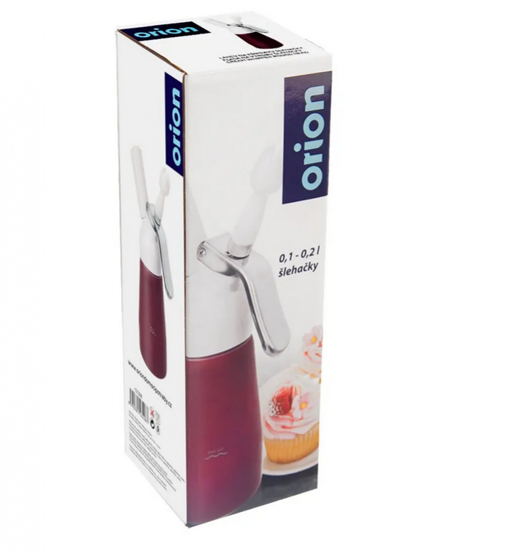 Pridajte vanilkový cukor, kakao či práškový cukor. Nepoužívajte hrudkujúce prísady ako stužovač alebo kryštálový cukor. Materiál: hliníková hlava s bielym nástrekom, PP plast (tryska, viečko), POM ventil, silikón.