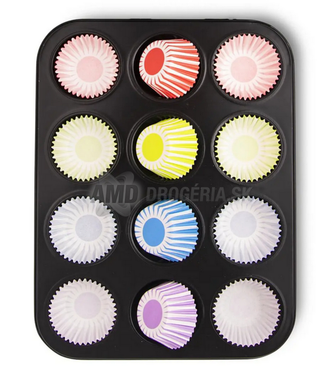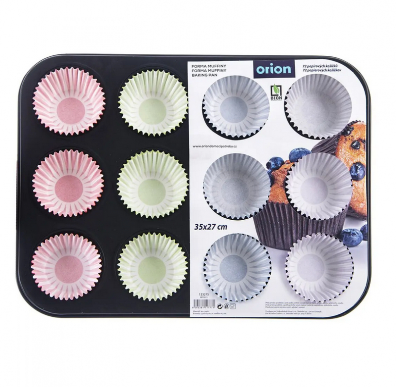 Muffiny plné čokolády, orechov a ovocia či nadýchané cupcaky s krémom zažívajú obrovský úspech. Sú perfektným dezertom k nedeľnej káve, pohostením pre hostí, na školské besiedky, oslavy či svadby. Priemer muffinov je približne 6,5 cm. Praktickú formu s nepriľnavým povrchom použijete priamo alebo s papierovými košíčkami – muffiny, cupcaky či sladké a slané tartaletky potom rovno servírujete.
