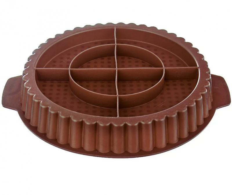 Silikónová forma s priemerom 27 cm a antiadhéznym povrchom je ideálna na dozlatista upečený nadýchaný korpus so zvýšeným okrajom. Po otočení naplníte vnútro tvarohom, ovocím zaliatym želatínou či obľúbenou náplňou. Spevnené dno zaručí rovný korpus.