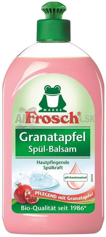 Balzam na umývanie riadu Frosch granátové jablko čistí riad prirodzeným a silným spôsobom. Jeho vyvážená receptúra s rastlinnými tenzidmi a výťažkami z granátového jablka kombinuje silné čistenie s charakteristikami priateľskými k pokožke. Ľahko odstráni mastnotu a nečistoty, zanechá riady iskrivo čisté a má príjemnú vôňu granátového jablka.